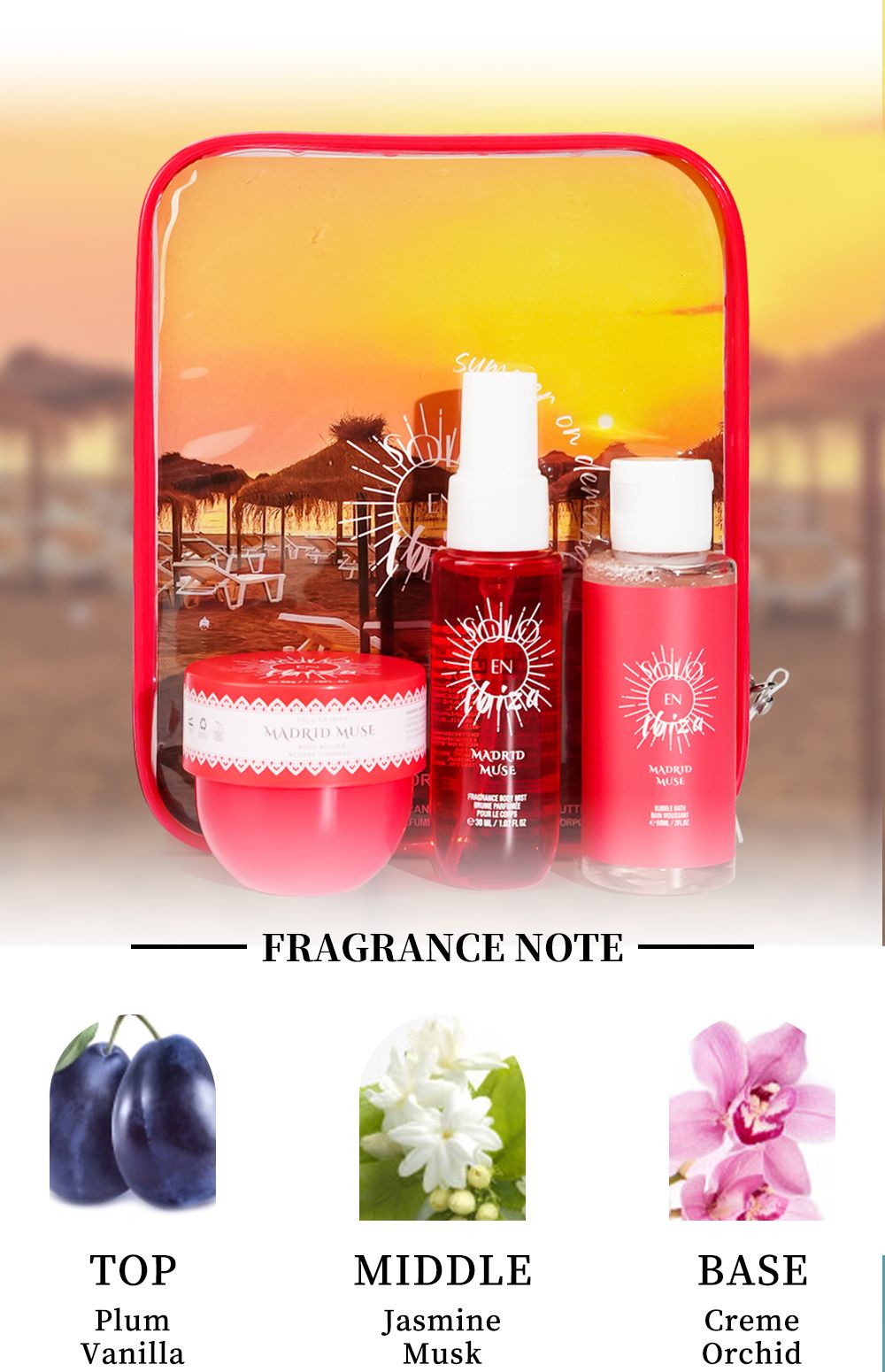 3pcs Set SOLO EN Body&Hair Fragrance Mist Perfume&Bubble Bath&Body Butter Travel Box for Men And Women, 4 Different Flavor Gift Box, Dating