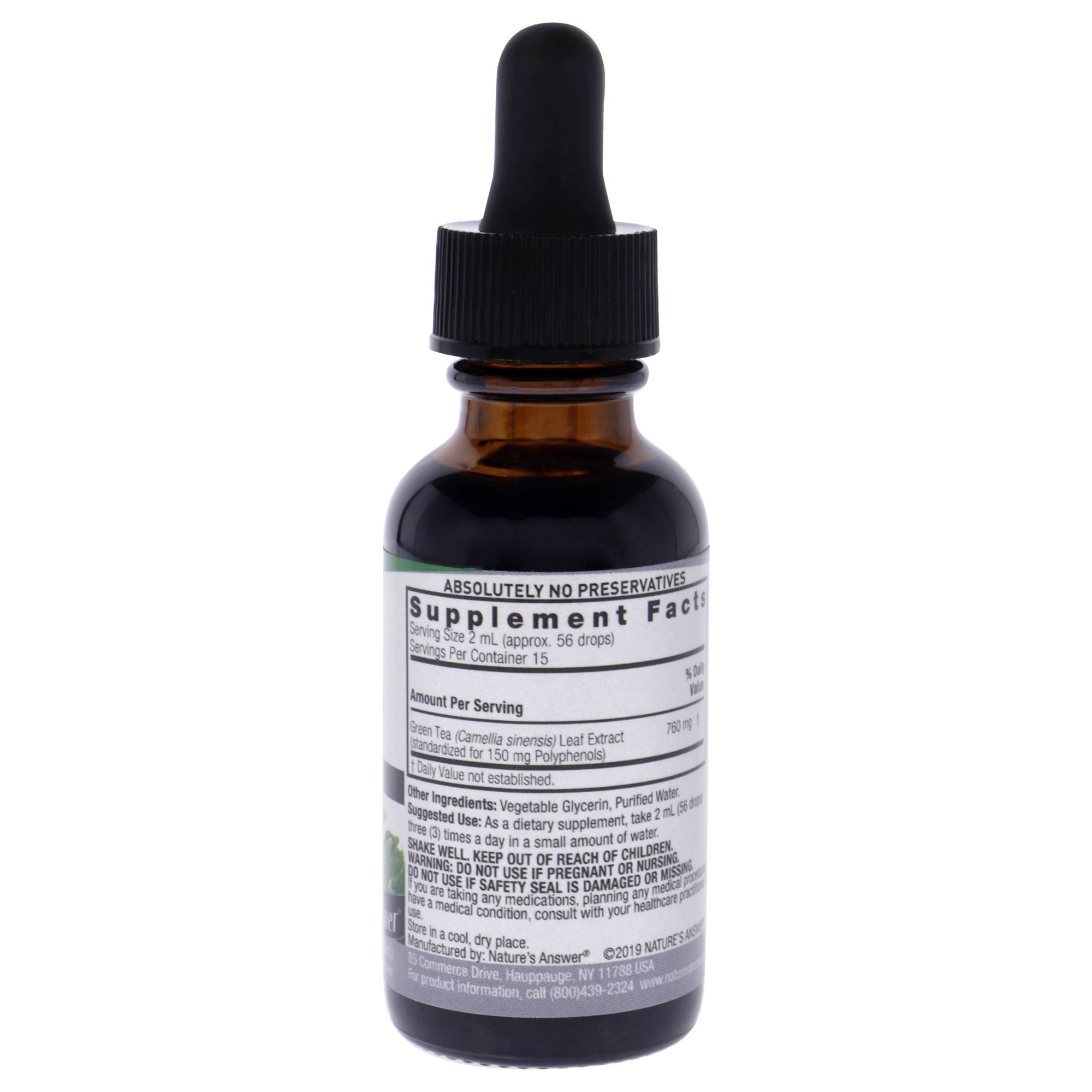 Nature�s Answer Green Tea extract is an exceptional way to enjoy the naturally healthy benefits of green tea. Super concentrated, made from 2,000 mg of green tea leaves. It�s all natural, a rich source of antioxidants. Antioxidants are important in helping to support the immune system. It is also an excellent source of polyphenols that include beneficial catechins and EGCG. Nature�s Answer Green Tea is a botanical energizer, naturally supporting healthy energy levels. It contains absolutely no preservatives, and it�s gluten-free and alcohol-free, so you can feel good adding it to a cup of hot water, a glass of juice, or even mixing it into a smoothie.