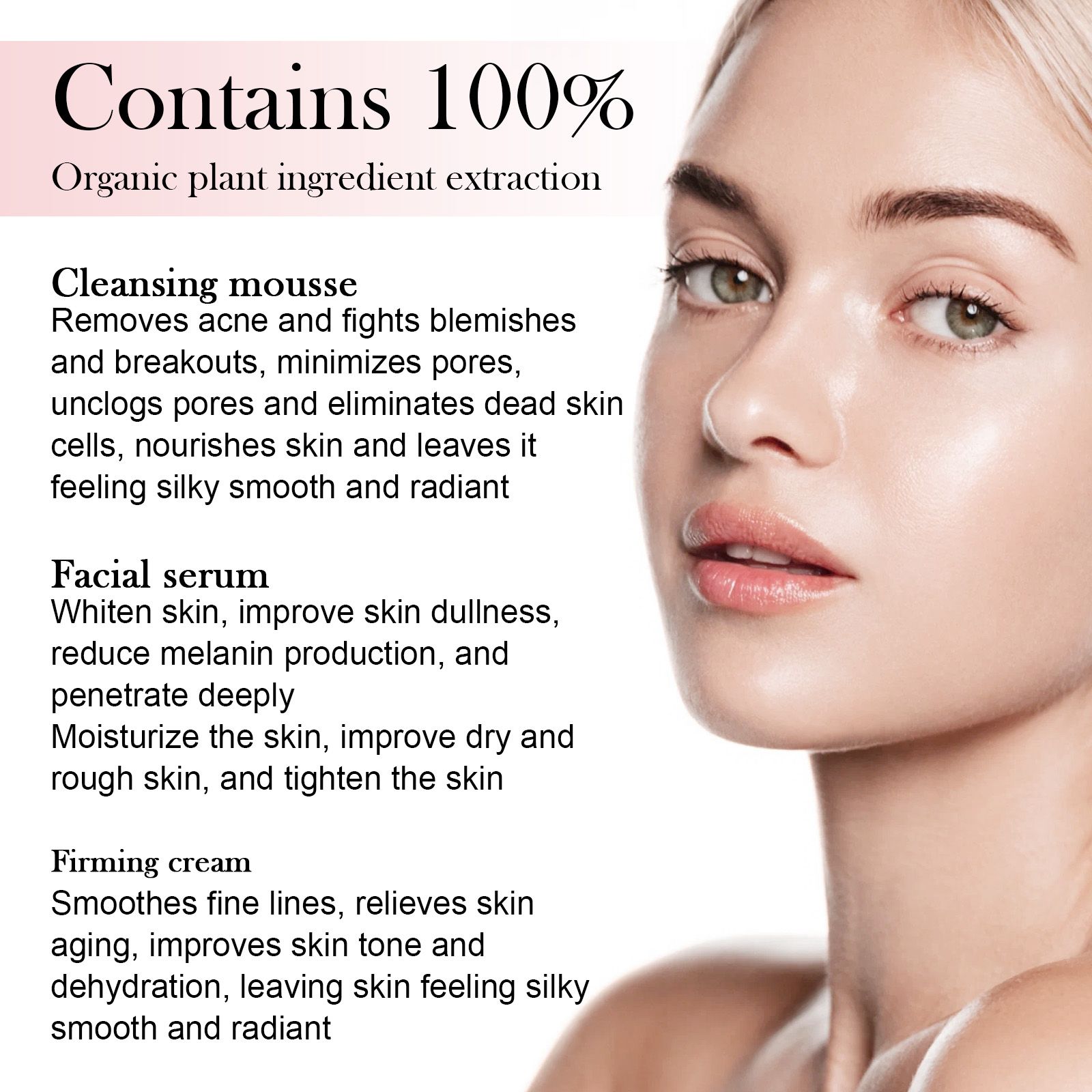 Our 5-in-1 facial moisturizing set contains hyaluronic acid, niacinamide, and vitamin c. It can help manage and , burns, peeling and caused by seborrheic , folliculitis and . It helps to eliminate the recurrence of seborrheic and and restore natural skin. Its use method is very simple: cleansing mousse: use once in the morning and evening, evenly apply, massage with water after massage, serum: 1-2 times a day, massage until absorbed after use, cream: use in the morning and evening, massage until absorbed. And skin care.