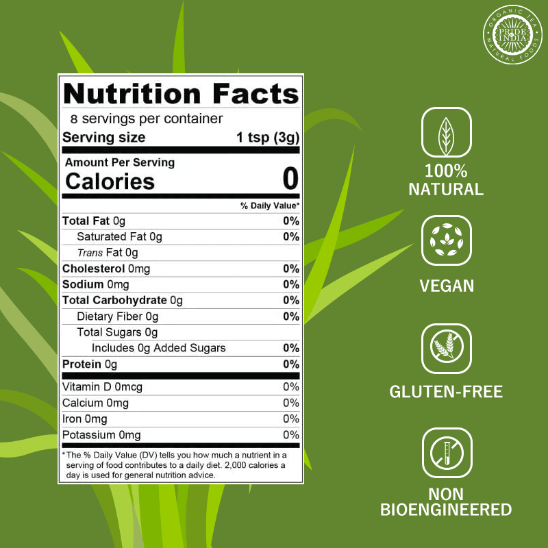 Pride Of India brings naturally grown food and herbal products from India that enhance the overall health of the human body through the centuries long tradition of consuming pure foods from farm to table. We are a family owned company and source all our ingredients from direct farms in order to preserve the quality as well as freshness of all our products. We value sustainable farming and aim to build a company that benefits the entire food chain from the grass root level upwards. We are committed to sourcing the freshest naturally grown spices from farms situated around the Indian subcontinent. Our naturally cultivated pure spices render a wonderful cooking experience and ignite taste buds . Pride of India Natural Lemongrass Fine Cut & Sifted is an authentic Indian culinary herb and possess health benefits as well. It is also known as Cymbopogon and belongs to Poaceae family. Lemongrass is famous for its use in herbal tea worldwide and is also common in asian culinary applications. It is best for tea, soups, marinades, spice-rubs, stews and curry paste etc., imparting lemon flavor to dishes. In addition it helps in relaxation, blood circulation and detoxification. Lemongrass is used in essential oils which can be used to soothe body ache and muscle pain. Our customers are the most important link in fulfilling our aim and therefore, we strive to provide an unparalleled service in order to satisfy all our consumers to the best of our abilities. We hope that every customer has a great experience with us and enjoys our exclusive products to the utmost.