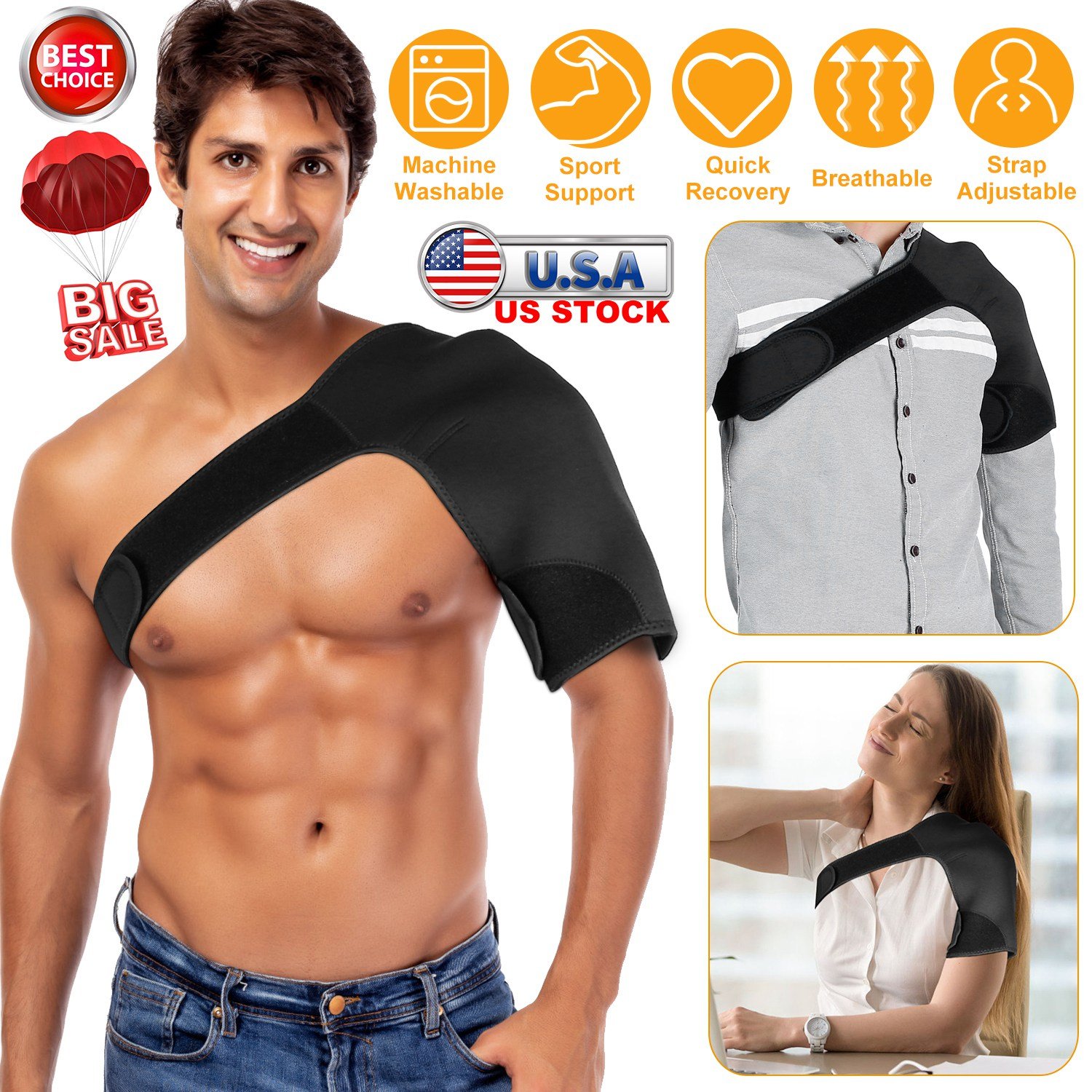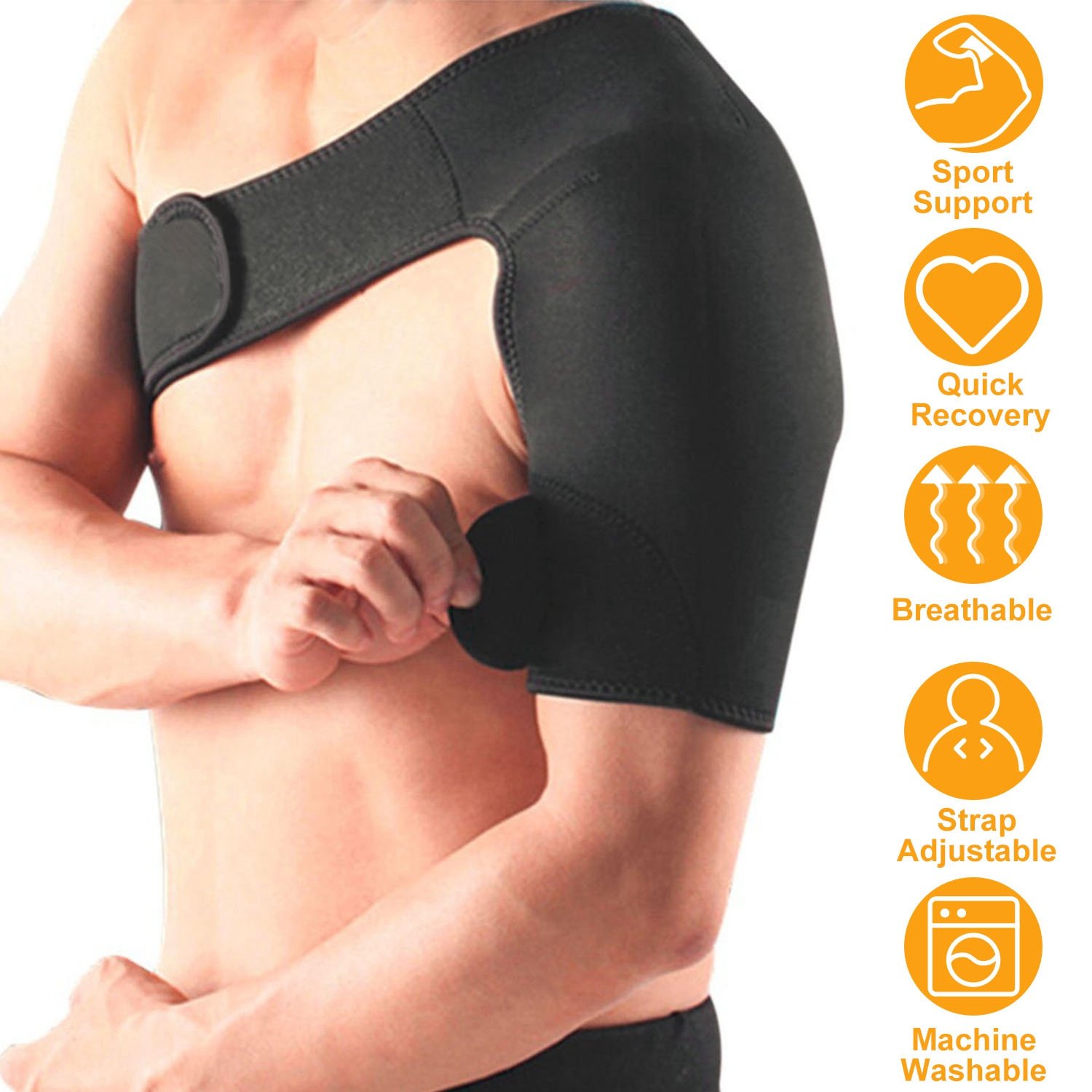 Made of spandex and nylon, our Shoulder Support Brace is breathable, soft and also easy to wear, perfect for shoulder injuries and recovery. Adjustable straps can fit your need perfectly and not easy to fall off and slide. You can choose the right or left Shoulder Support Brace to meet your need.